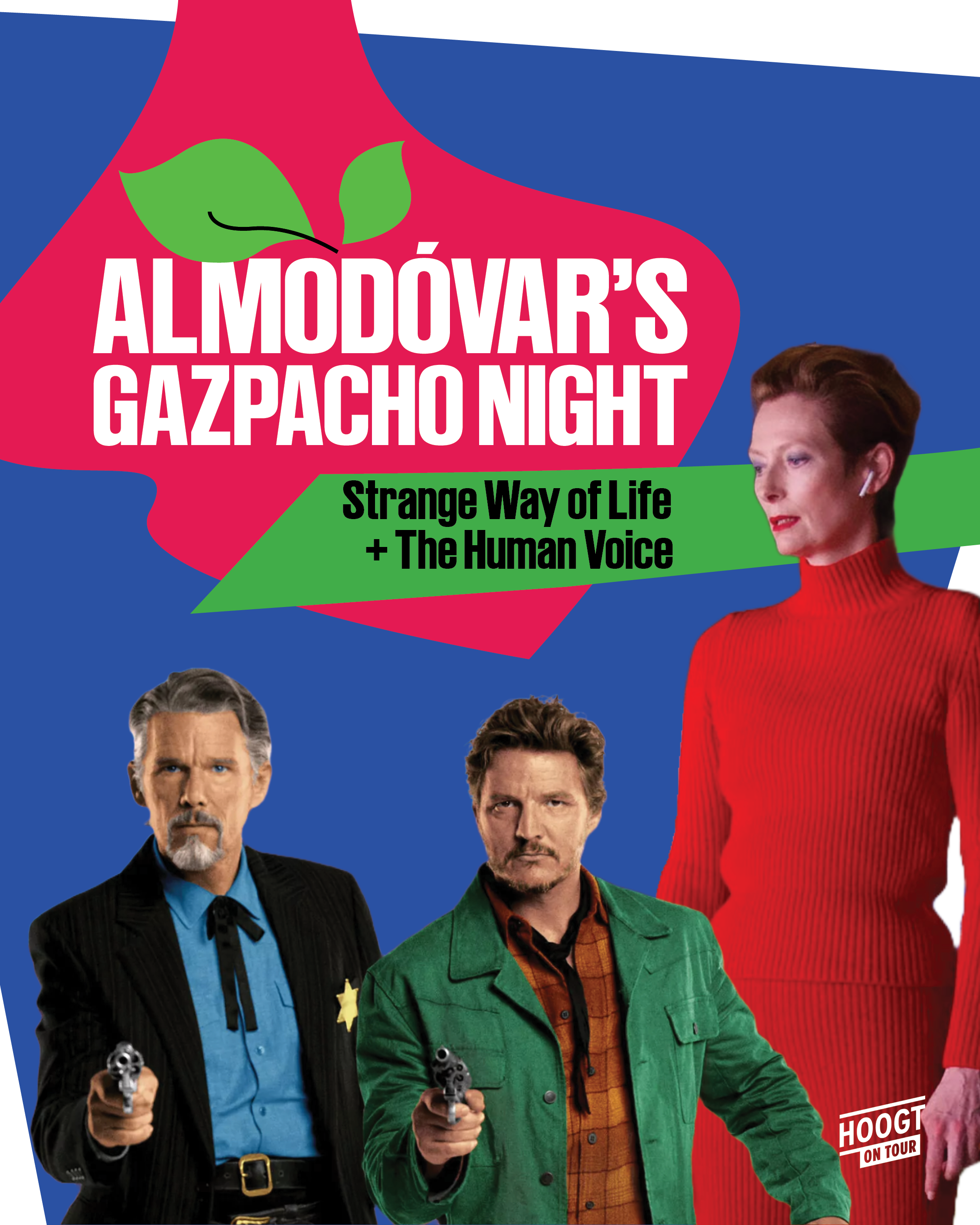 Vrijdag 18 juli kijken we Strange Way of Life en The Human Voice: Twee korte films waarin verlangen, verlies en stijl in volle glorie samenkomen. Met onder anderen Ethan Hawke, Pedro Pascal en Tilda Swinton. Onmisbaar voor de liefhebber van intense cinema in compacte vorm.